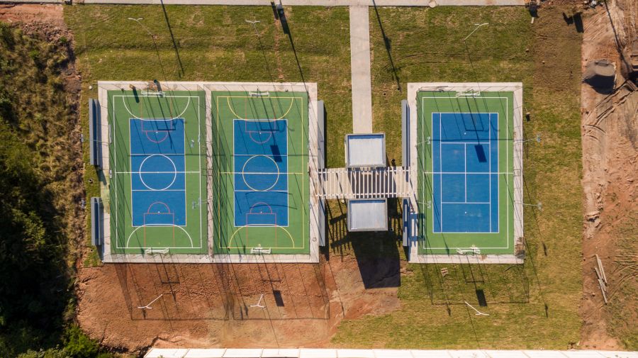 Quadras esportivas e campo de futebol society